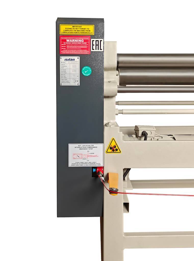 - Наличие поворотно-откидного механизма верхнего ролика для быстрого снятия заготовки;