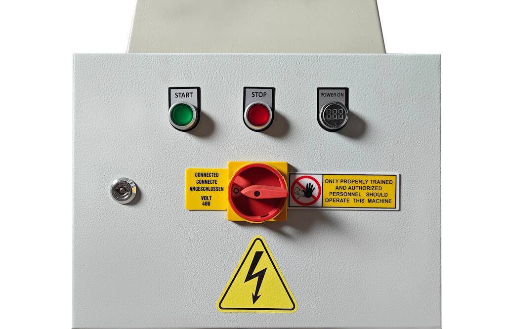 С помощью эргономичной переносной педали осуществляется запуск вращения валов в обе стороны. Педаль оснащена также кнопкой аварийной остановки