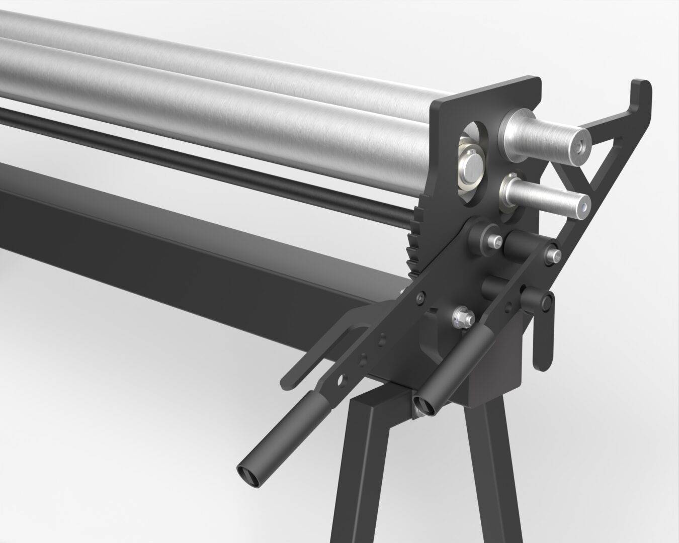 Модель отличается от аналогов быстросъемным креплением верхнего вала, а также жесткой фиксацией листового металла толщиной до 1.2 мм. Станок не нуждается в трудоемком техническом облуживании: цельнометаллические валы и игольчатые подшипники не требуют дополнительного смазывания.