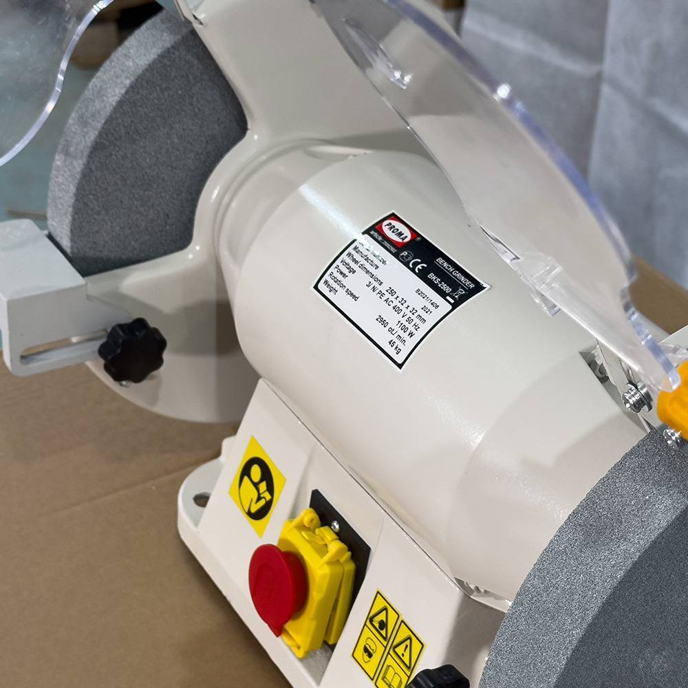 Заточный станок Proma BKS-2500 25002502 широко используется в производствах для заточки инструмента и оснастки, а также шлифовки. Два шпинделя дают возможность использовать заточные круги различной шероховатости, это позволяет выполнять две операции (черновая и чистовая заточка), не меняя круг. Удобные подставки повышают точность обработки.