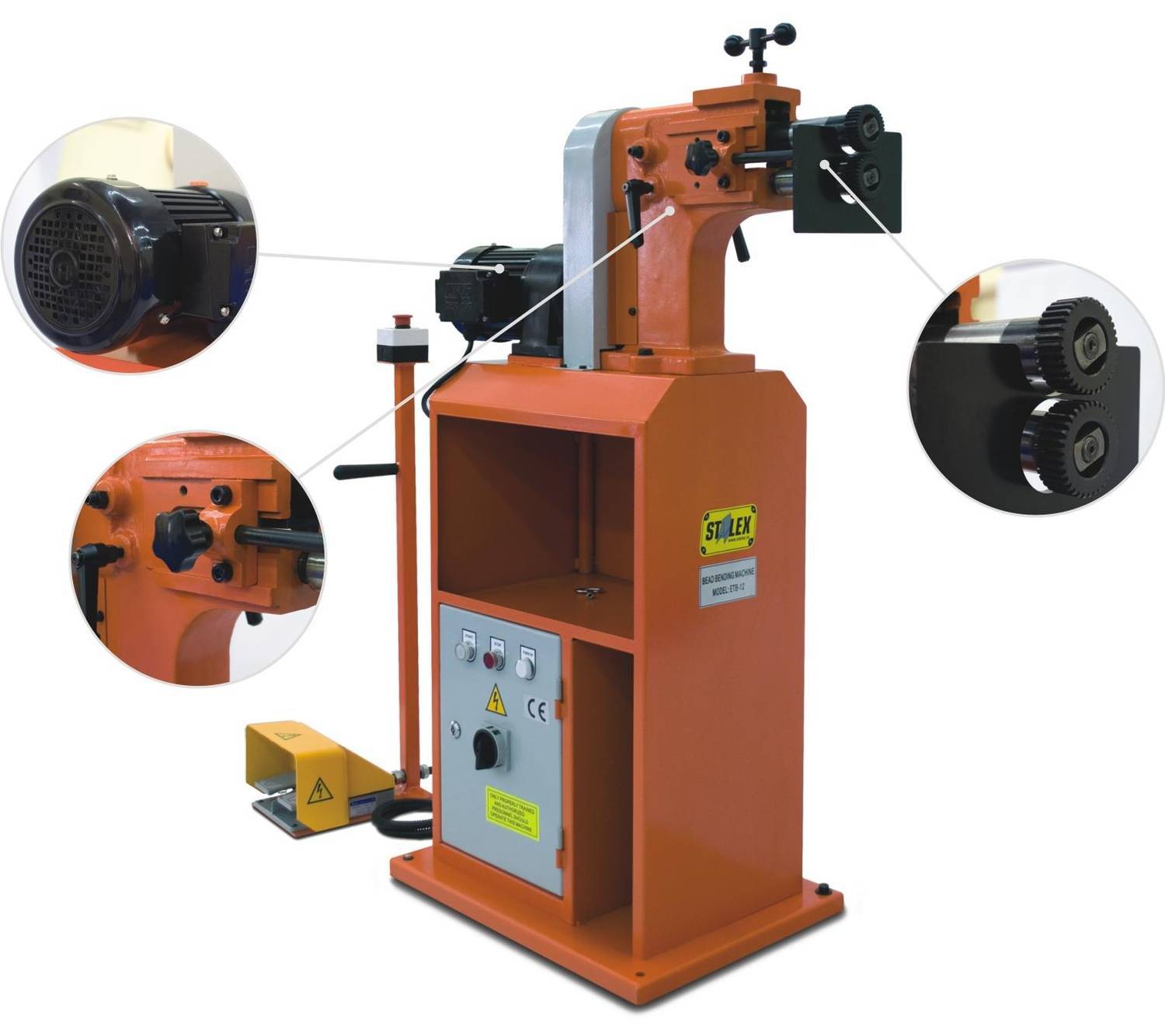 Комплектуется четырьмя наборами стандартных роликов для закатки кромок, отбортовки, изготовления S-образного профиля.