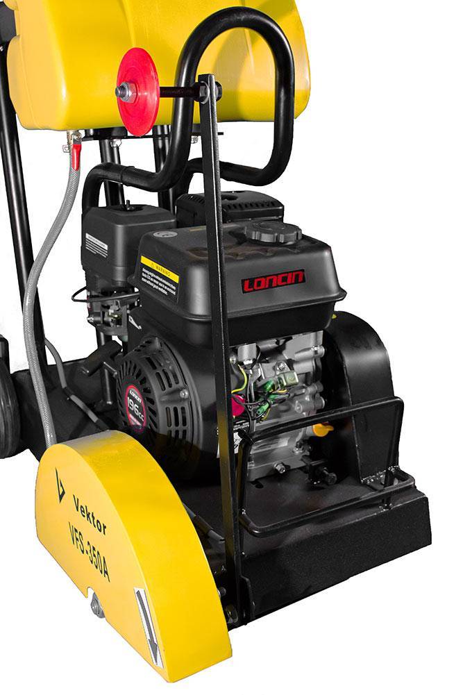 Отлично подходит для резки швов глубиной до 100 мм. С помощью швонарезчика можно разрезать как бетон, так и асфальт. Работает от мощного бензинового двигателя (LIFAN 168F-2). Рекомендован для использования в открытых рабочих зонах. Отличается автономностью и простотой использования. При работе резчик безопасен и надёжен. Может резать без использования охлаждения. Оптимальное давление на диск обеспечивается правильно распределённым весом внутренней конструкции. Щиток диска открывается на петлях, что обеспечивает более лёгкую смену диска. Шины швонарезчика выполнены из мягкого каучука, что обеспечивает плавность хода. Легко перевозится любым транспортным средством.