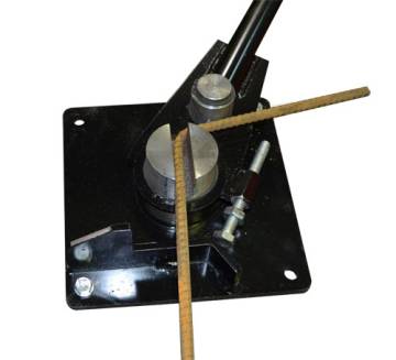 Принцип работы агрегата прост: арматура крепится между центральным и упорным валом инструмента, после чего она сгибается в нужную сторону под воздействием гибочного вала.